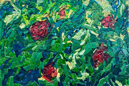 На выставке представлены работы 2022–2025 годов — уникальная возможность увидеть, как из тысяч фрагментов складывается целостный и гармоничный мир, созданный одним из самых вдумчивых современных мозаичистов.