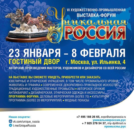 PR, пресс-служба выставки (аккредитация СМИ): press@uniquerussia.ru,