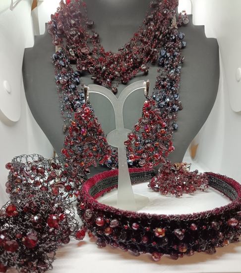 Здесь воротники не сковывают, а творят форму, превращаясь в драгоценные трансформеры. Воздушные колье серии «Образы» из натуральных камней, тёплого янтаря и мерцающего бисера — будто кружева, сплетённые самой северной ночью. Объёмные обручи, изящные почки для очков и современные чокеры дополняют эту коллекцию, где каждое украшение — это законченная мысль, выраженная на языке красоты.