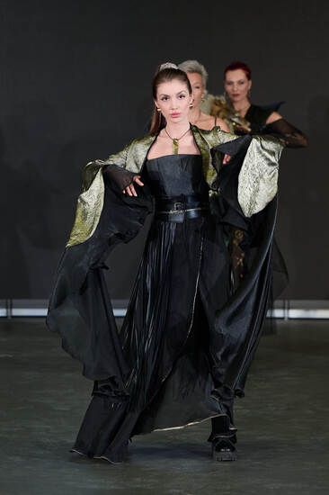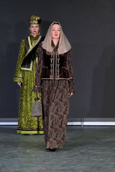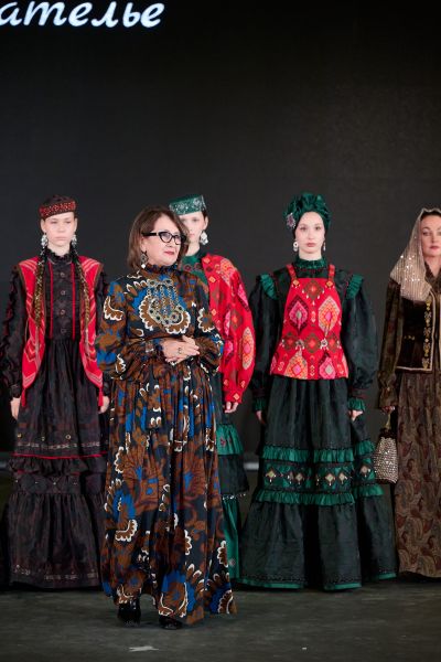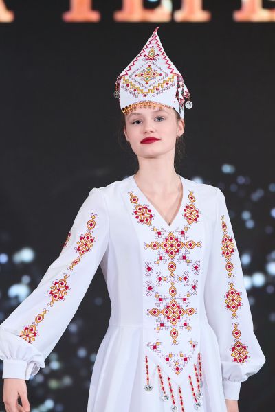 Отдельная глава фестиваля — дебюты и молодые имена. Начинающий дизайнер Софья Терёшина (Краснодарский край) представила коллекцию «Сон», а студенты Казанского государственного института культуры покорили зал образами «Красна девицы».