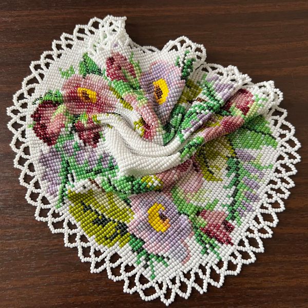 - Декоративная салфетка из бисера "Краски лета" создана в технике ручного ткачества из чешского бисера. В начале 20-го столетия чуть ли не в каждом доме, каждой квартире подобные декоры из ткани украшали столы, комоды, камины.... Я решла возродить эту идею, но в бисере. Подобный аксессуар создает неповтормый уют в любом жилом помещении. 2. Галстук "Вологодские мотивы" из серии "Русский стиль" выполнен из японского бисера мозаичным плетение в сочетании с кабошоном из голубого аппатита в качестве "галстучного узла", выполненного в технике вышивки бисером. Серия "Русский стиль" относит нас к традиционным русским узорам различных регионов нашей большой страны. Любовь к России дала толчок к созданию этой коллекции. Создание подобных аксессуаров - это совмещение русских традиций в художественном творчестве и современных реалий моды. Подобный галстук может использоваться людьми обоих полов, поскольку сегодня галстуки не являются исключительной частью мужского гардероба. Березовская Наталья Евгеньевна - член Творческого Союза Хдожников Декоративно-прикладного Искусства. Занимаюсь созданием украшений и сувениров из бисера и натуральных камней с 1995 года. Призер многих специализированных конкурсов, в том числе международных, есть публикации в различных журналах по рукоделию и в сборнике "Мастера Современного искусства", соавтор учебного пособия по рукоделию "Волшебный ларец".